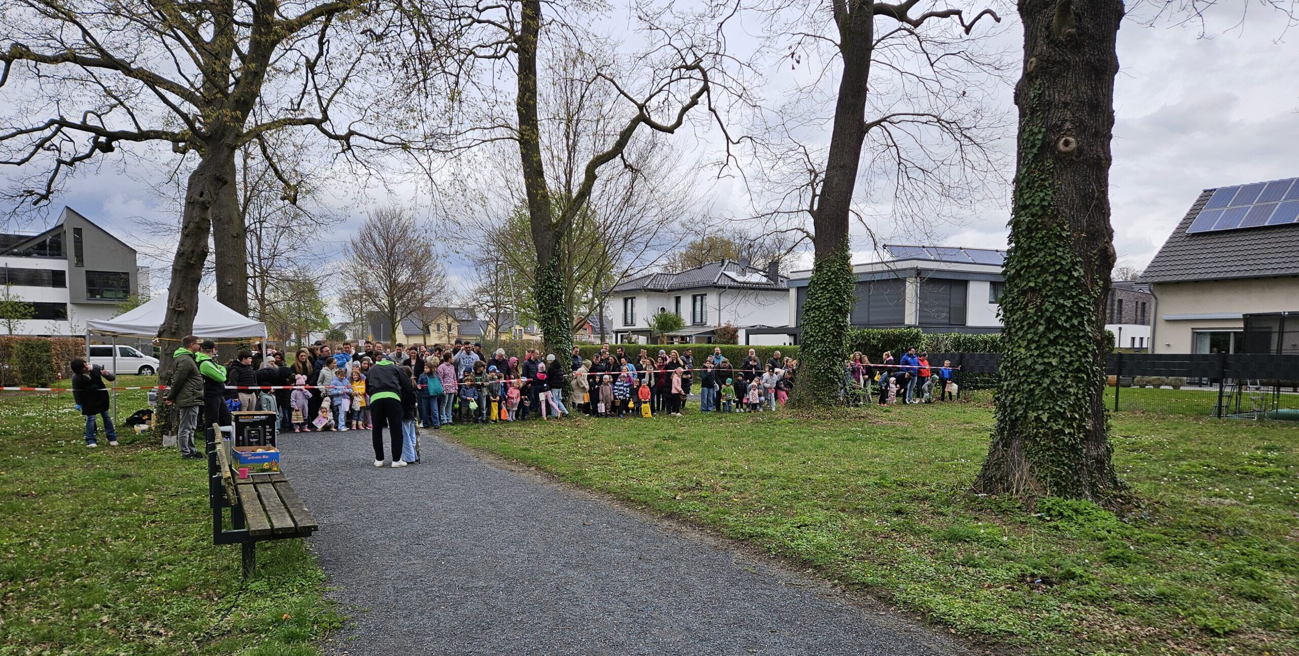 Rund 50 bis 70 Kinder waren dabei und machten sich mit ihren Körbchen auf die Suche nach den versteckten Ostereiern. Auf der Parkfläche an der Hohenbuschei-Allee herrschte eine fröhliche Stimmung, und es war schön zu sehen, wie viel Freude die Aktion wieder bereitet hat.