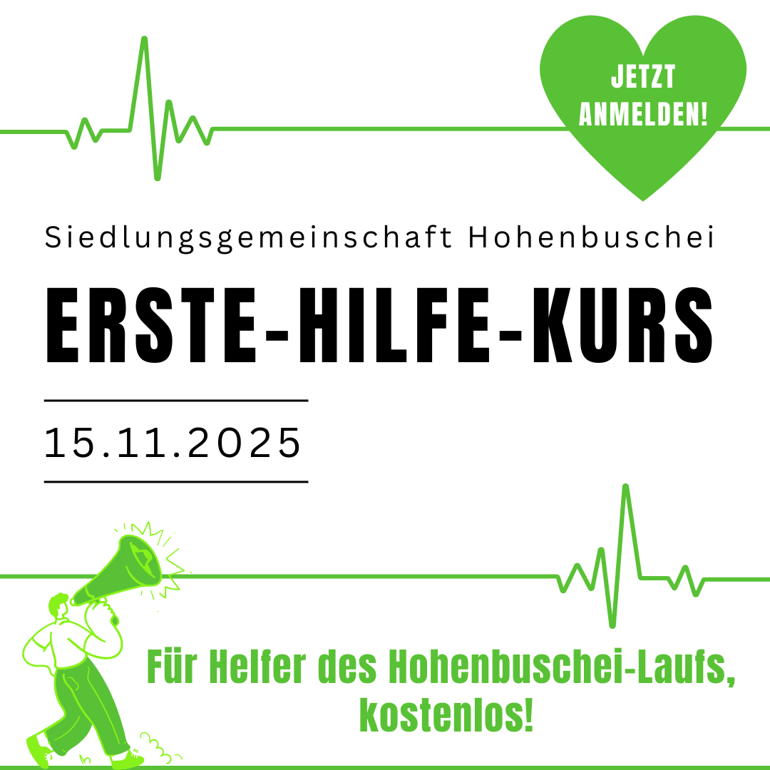 Als Siedlungsgemeinschaft haben wir einen Erste-Hilfe-Kurs organisiert, den wir allen Nachbarn gerne anbieten möchten. Es handelt sich um einen Kurs über 9 Unterrichtsstunden, der für alle Führerscheine gilt.